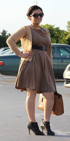 Avec sa petite robe beige camel, ses bottines à petits talons, son sac «dadame» et surtout son petit chignon en tresse, on aurait dit une icône du cinéma tout droit sortie d’un film des années 50, où elle aurait pu tourner aux côtés des plus grands tels que Marylin Monroe ou Audrey Hepburn !